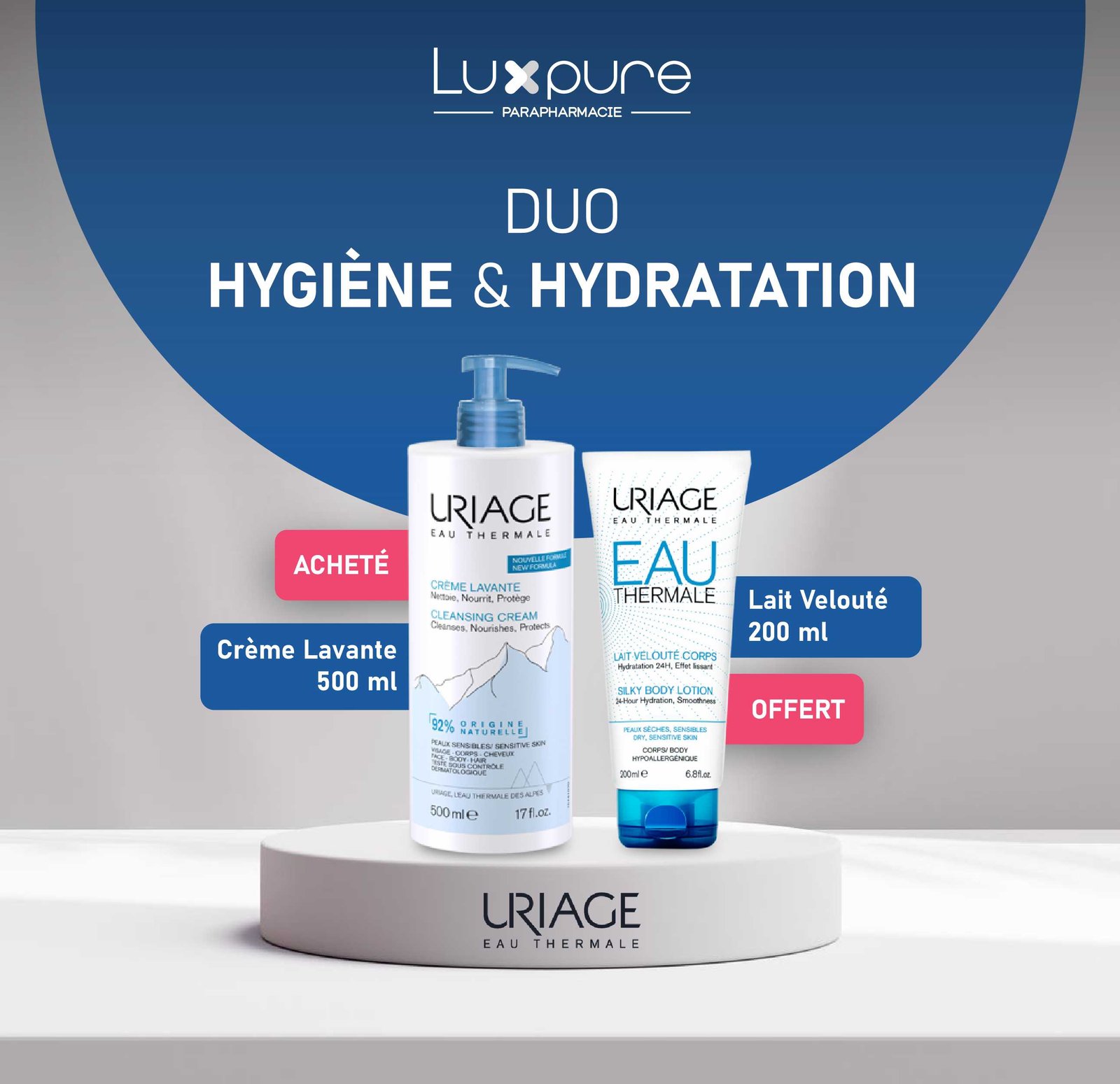 Problématique spécifique Tous types de peaux Bénéfice produit Très agréablement parfumé, ce soin 2 en 1 nettoyant et nourrissant laisse la peau parfaitement propre, douce et hydratée. Nettoie Sa base lavante sans savon à pH physiologique élimine toutes les impuretés en douceur. Nourrit Avec 1/3 de lait nourrissant, elle préserve le film hydrolipidique de la peau. Protège Grace à ses agents doux surgraissants et l’Eau Thermale d’Uriage, elle protège la peau des effets desséchants de l’eau calcaire. Caractéristiques Eau Thermale d’Uriage — Base lavante douce sans savon — Actifs hydratants (glycérine) et surgraissants — 1/3 de lait — Testé sous contrôle dermatologique — Testé ophtalmologiquement Conseil d’utilisation Bien faire mousser votre crème lavante uriage sur une peau mouillée, puis rincer. Usage quotidien.