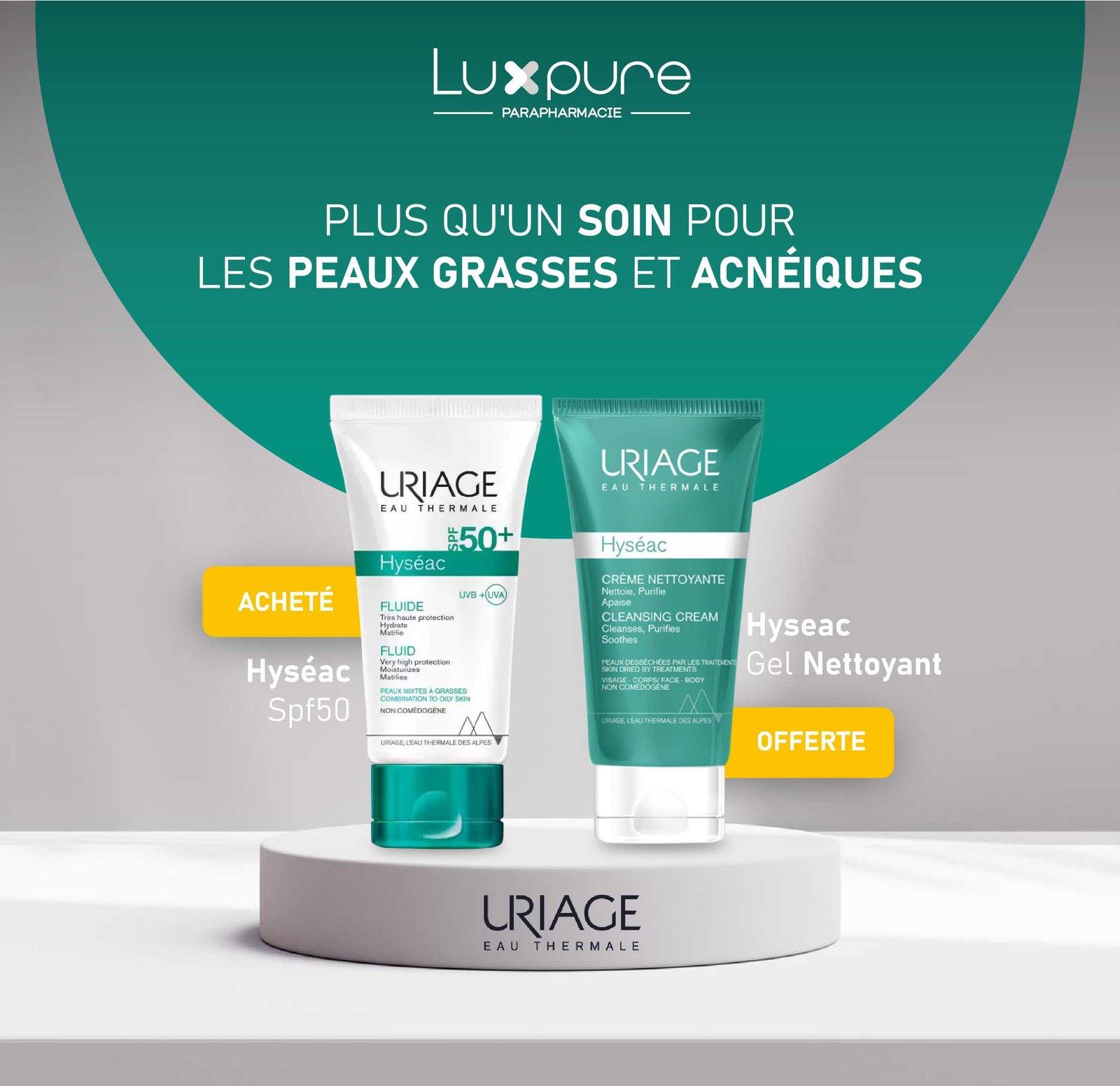 URIAGE Fluide Hyseac Spf50+ = Hyseac Gel Nettoyant OFFERT